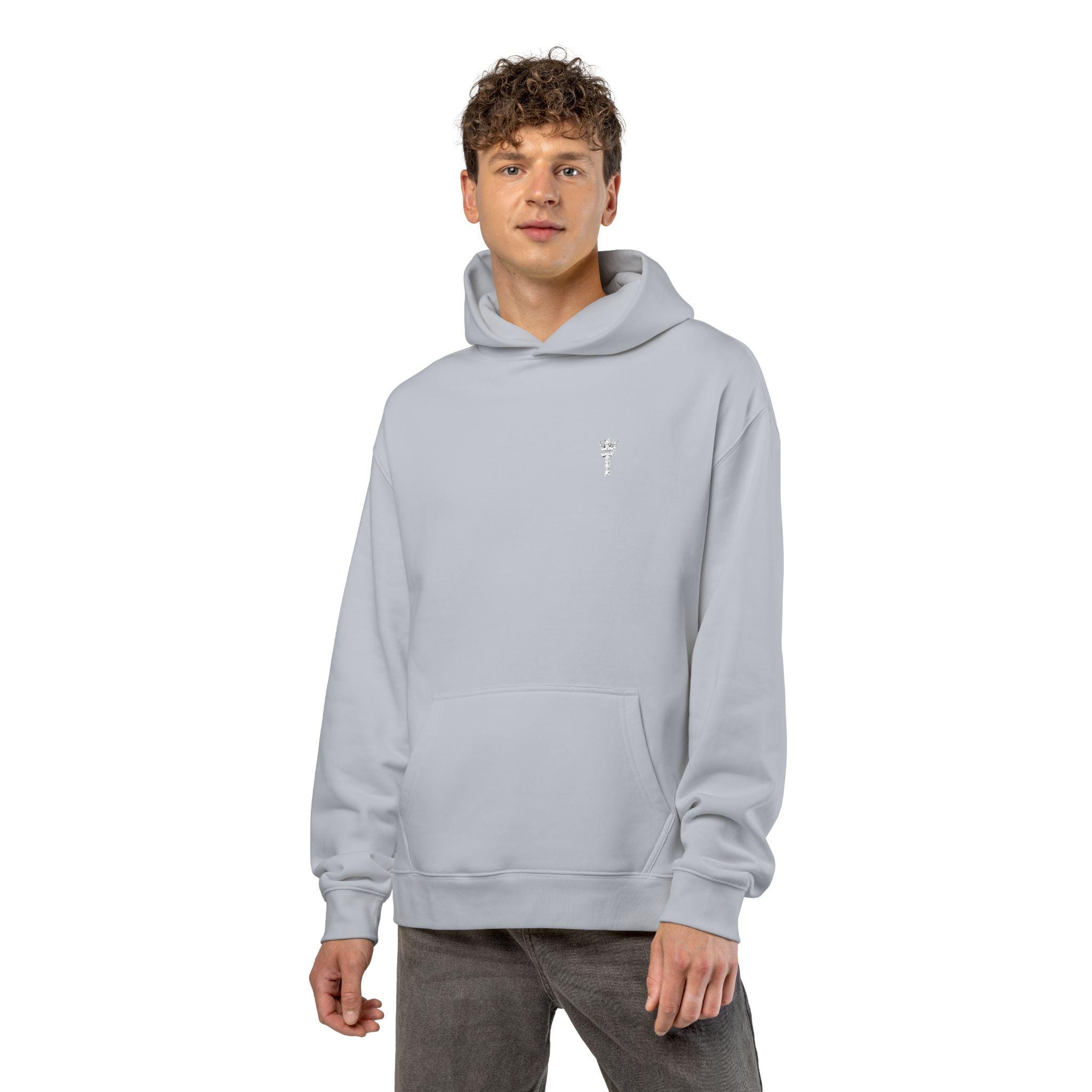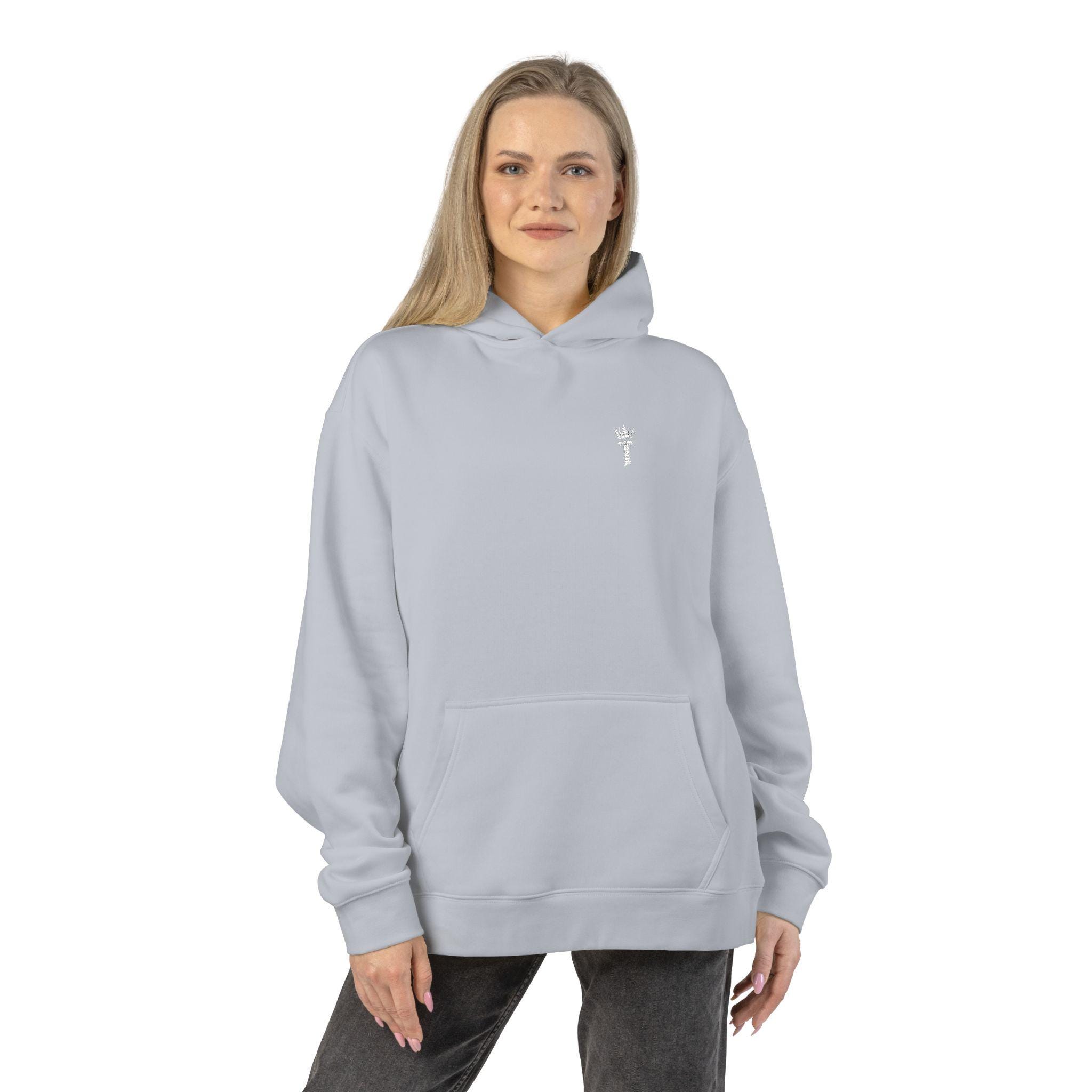 This relaxed hoodie carries the quiet confidence of steady growth. The crowned T emblem sits over the heart — a simple symbol for THRYVE’s daily practice of self-improvement. Slip it on for slow mornings with a notebook, for late-night deep work sessions, or for walks where you sort thoughts aloud. The weight and drape feel grounding; the kangaroo pocket is there for cold hands or a phone, and the drop shoulder gives room to move without fuss. Wear it when you want your clothes to reflect progress, not noise.